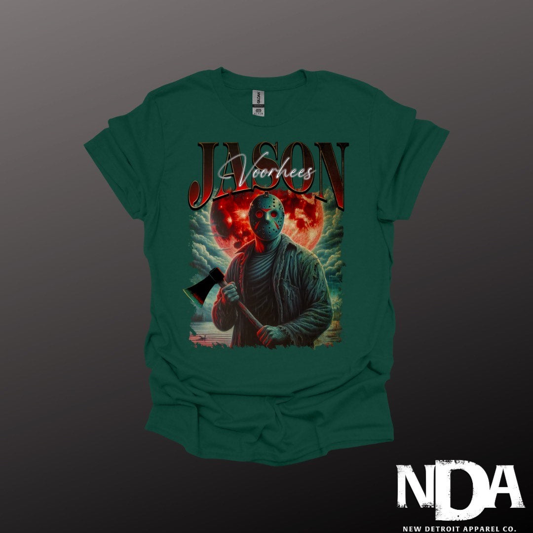 This Jason Vorhees tee features a custom-printed design inspired by the iconic Friday the 13th character. Crafted from Gildan Softstyle fabric, it offers a comfortable, lightweight fit with a smooth finish. Perfect for fans seeking a high-quality, durable shirt that combines style with subtle horror flair. Each shirt is made to order, ensuring attention to detail and a unique addition to your collection.