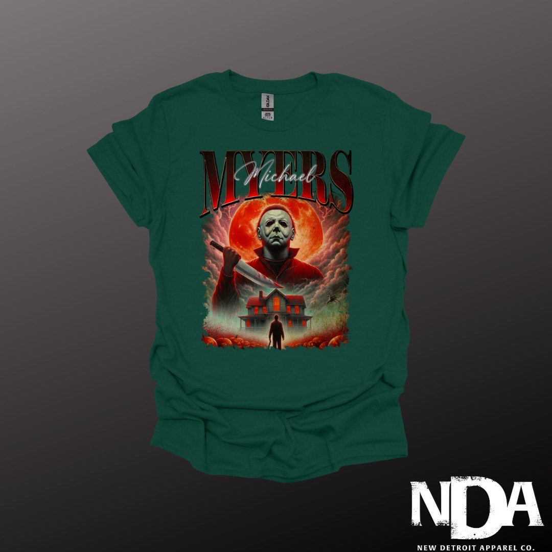 This Michael Myers tee features a custom-printed design inspired by the iconic Halloween character. Crafted from Gildan Softstyle fabric, it offers a comfortable, lightweight fit with a smooth finish. Perfect for fans seeking a high-quality, durable shirt that combines style with subtle horror flair. Each shirt is made to order, ensuring attention to detail and a unique addition to your collection.